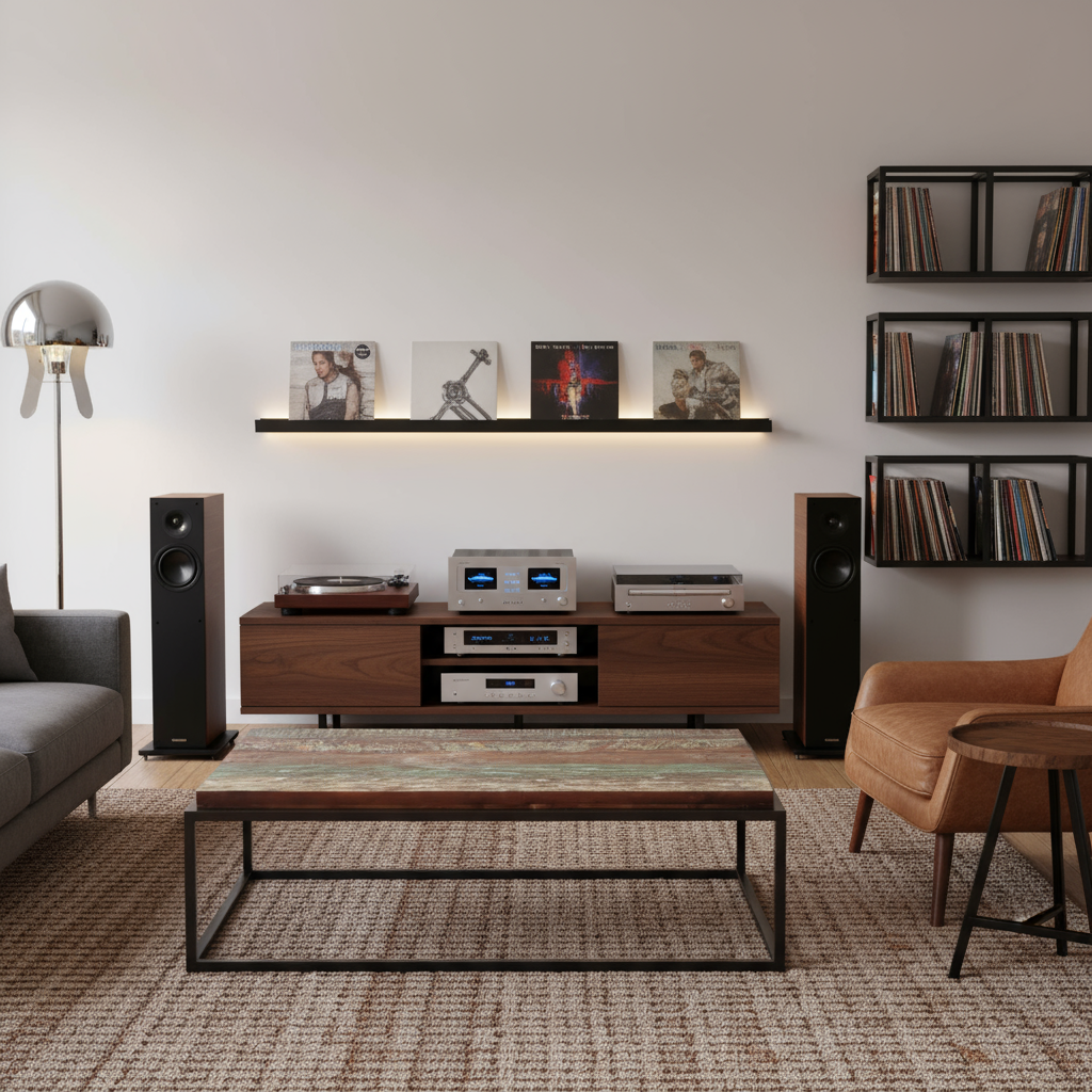 The Asam’s understated design blends seamlessly into any room, from modern lofts to cozy stereo dens. Pair it with exposed brick, warm lighting, and vintage gear to complete the look.