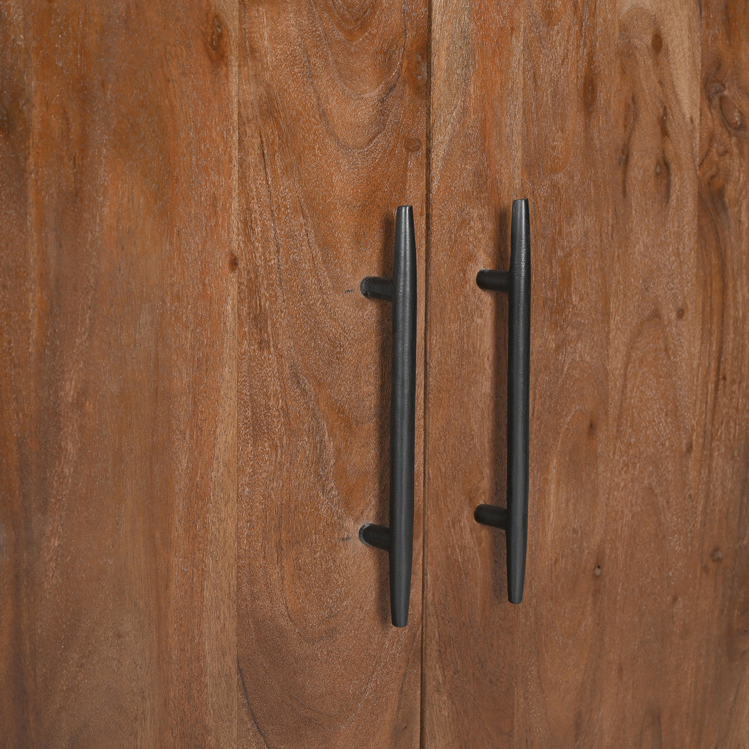 Crafted from solid acacia wood, each piece showcases unique variations in color and grain, making it one-of-a-kind. The wood is responsibly sourced from sustainable acacia trees.